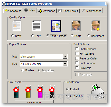 সমস্যা: ২ (নকল জিনিস দিয়া কাজ করি না!!) [শুধু Epson Inkjet প্রিন্টার (CISS সহ )এর ক্ষেত্রে প্রযোজ্য]: